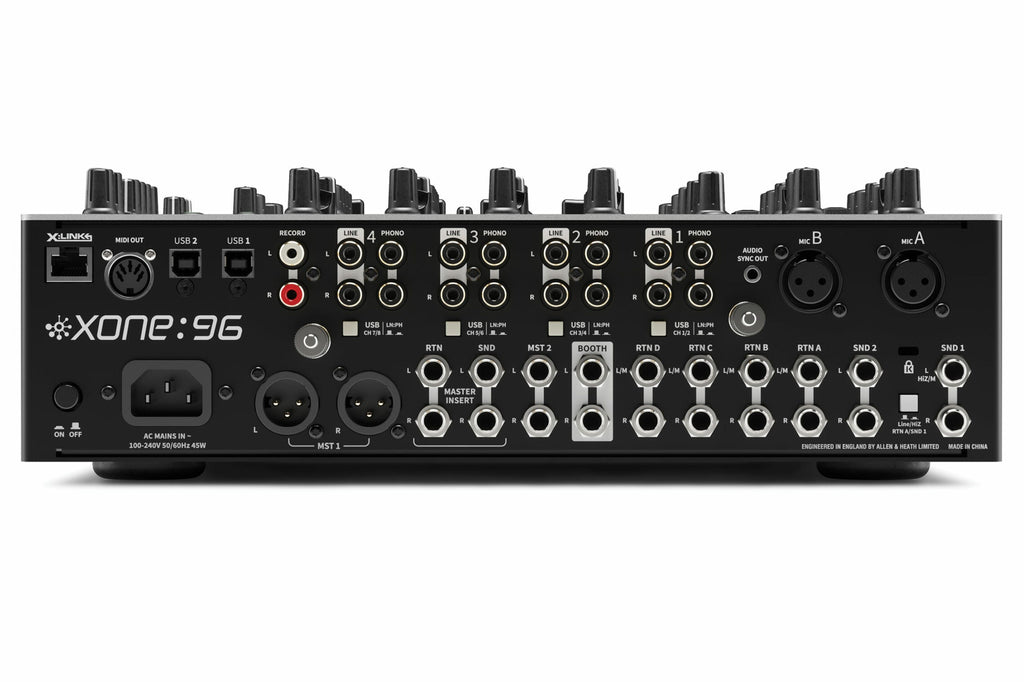 With a familiar layout of beautifully tactile controls and ground-breaking audio tools that allow the development of an individual’s signature sound, Xone:96 enables users to easily connect their entire rig, from laptops and turntables, to pedals, synths and drum machines. There are two dedicated FX sends, four stereo input channels with 4-band EQ, two stereo inputs with all-new 3-band parametric EQ, two auxiliary stereo return channels and a separate master insert for outboard FX hardware.