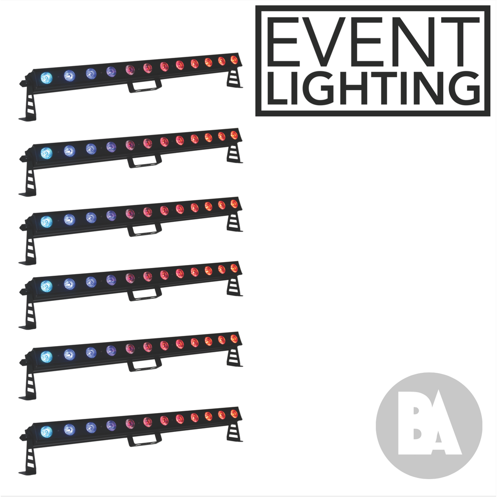 Take your event to the next level with 6 of these versatile lights. Able to be linked directly and via DMX these lights have a wide range of possibilities. They can strobe, UV, rotate colour or run like a parcan.